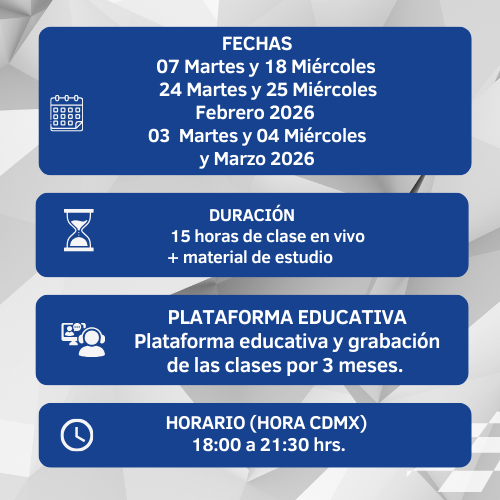 Temario dividido en 6 módulos (1 modulo por hora)